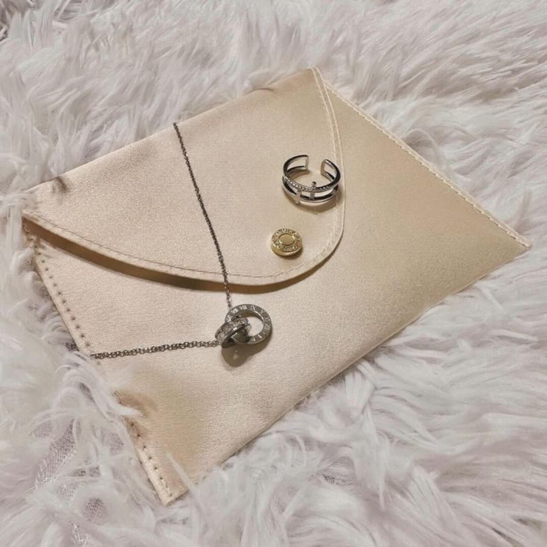 2本のラインが特徴的なリング。さりげないストーンの輝きが指先をスタイリッシュに引き立てます。付け心地が軽く、自然と指に馴染むリングです。