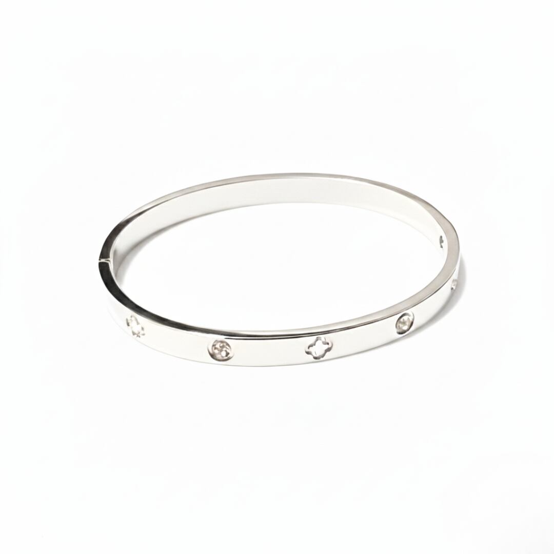 クローバーモチーフバングル。付け心地が軽く、自然と手首に馴染むバングルです。